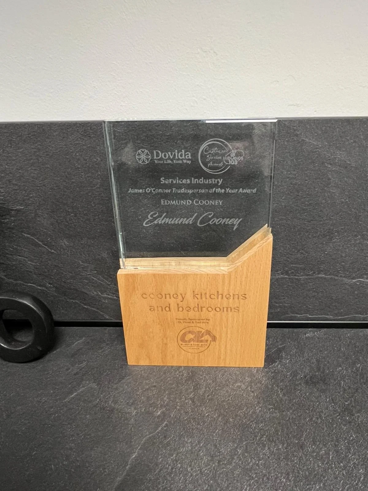 We’re incredibly proud to share that Edmund Cooney has been named as the James O’Connor Tradesperson of the Year at the 2025 Midlands 103 Customer Services Awards! After being norminated for the third consecutive year - and winning Kitchen Supplier of the Year in 2024 - we were honoured to be recognised in two categories this year. This award is a true testament to the dedication, craftmanship, and customer care shown by our entire team.